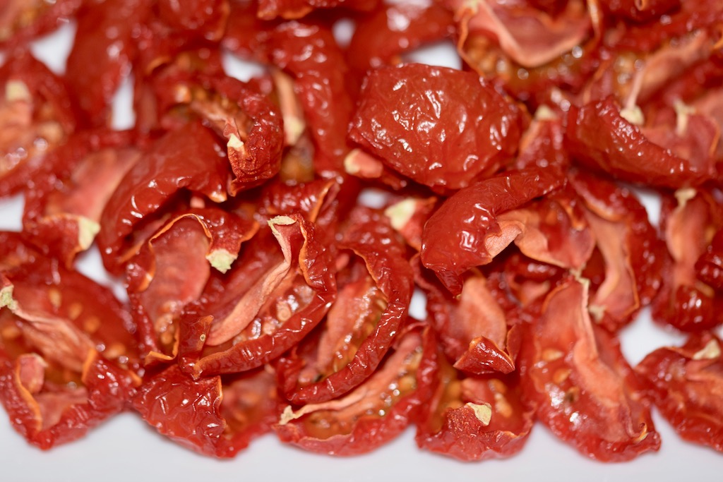 - Den Rucola sowie das Basilikum waschen, trocken schütteln und grob hacken. Dann die Oliven in Scheiben und die getrockneten Tomaten in Streifen schneiden.